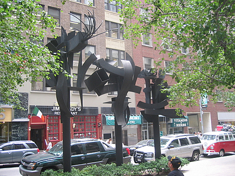 Площадь Луизы Невельсон Louise Nevelson Plaza "Тени и флаги" (Flags and Shadows) - 4 скульптуры Louise Nevelson Plaza, треугольный сквер перед зданием Федерального Резерва, - первое публичное место в Нью-Йорке, названное именем художника. Первоначально композиция, созданная в 1977г., состояла из семи скульптур. В 2009г. площадь подверглась реконструкции. |