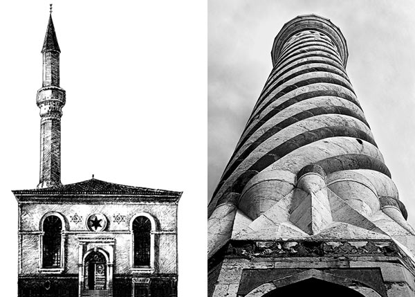 2. Витой минарет мечети в Эдирне (XV век, Турция).